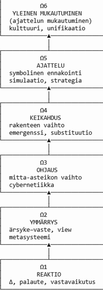 - Ajattelun hallinta = Kulttuuri : symbolit ja käsitteet eivät ole enää kiinteitä kokonaisuuksia; ne mukautuvat kulttuurisen evoluution prosessin kautta Ω6