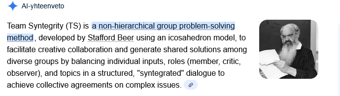 Team Syntegrity on Stafford Beerin yksi loisteliaimpia lahjoja jälkipolville. Yhteenveto siitä täällä. Ohessa siitä tehdyn ChatGPT – agentin lyhyt arvio (agentin kirjoitti Eki 27.12.25):